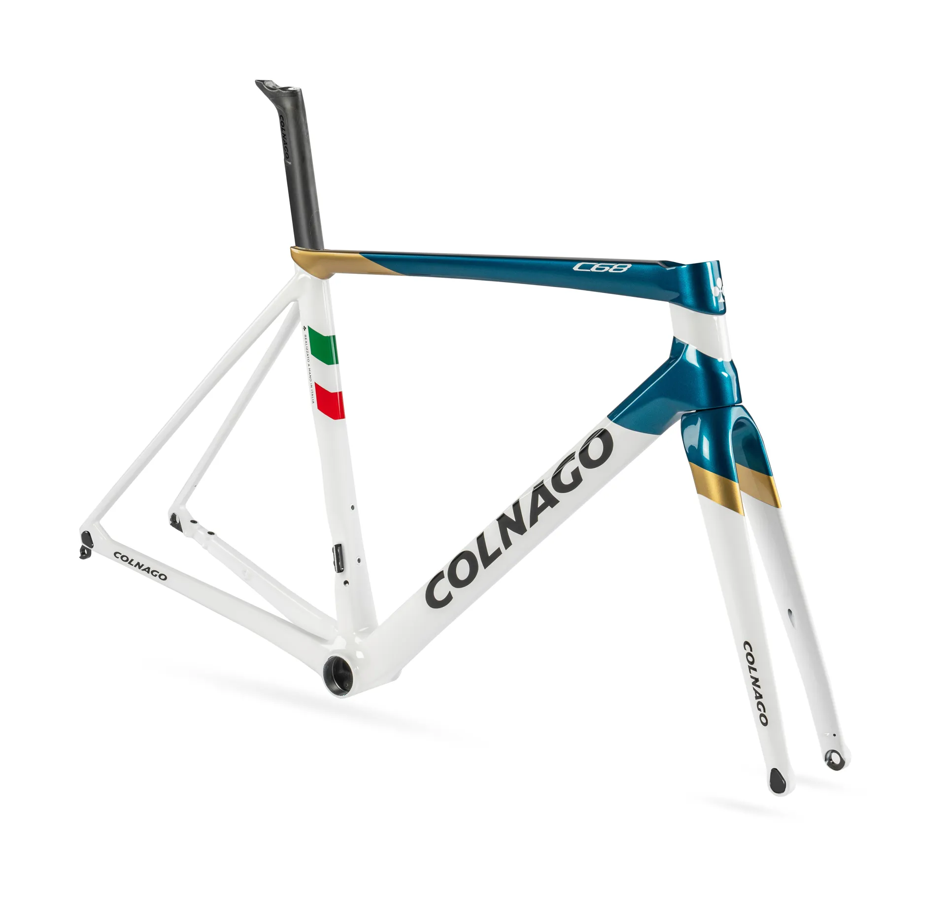 The number of parts that constitute the frame is the same as with the previous c series even though, from an aesthetic point of view, its line may be more similar to that of a frame manufactured in one piece. The choice was dictated by the search for a modern look, but always remaining desirable to the traditional colnago customer, thus widening the range of purchasing possibilities.
